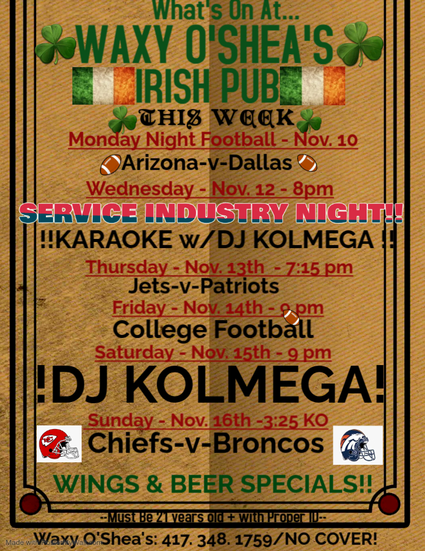 Welcome to Waxy O'Sheas, an authentic Irish pub located in the heart of Branson Landing. Our pub has been a staple in the community and is known for serving up delicious food, drinks, and a warm, inviting atmosphere that will make you feel right at home.
