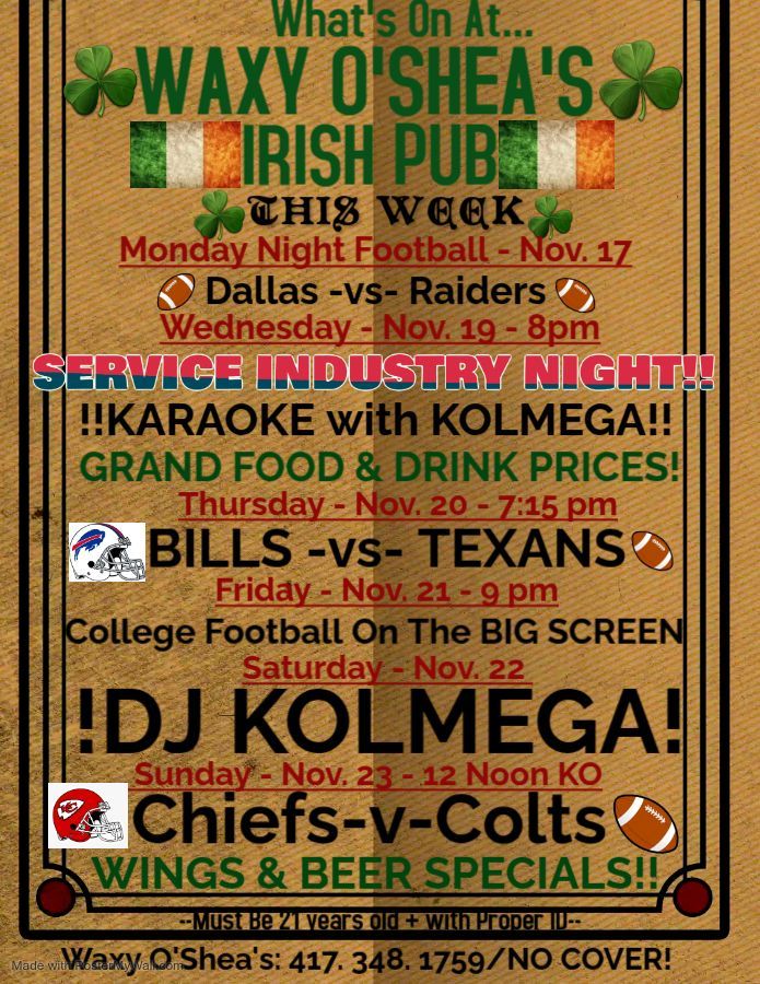 Welcome to Waxy O'Sheas, an authentic Irish pub located in the heart of Branson Landing. Our pub has been a staple in the community and is known for serving up delicious food, drinks, and a warm, inviting atmosphere that will make you feel right at home.