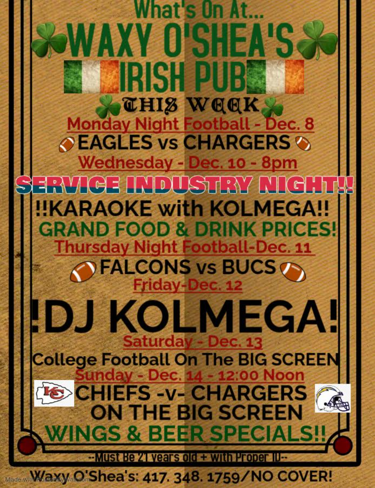 Waxy O'Shea's Events