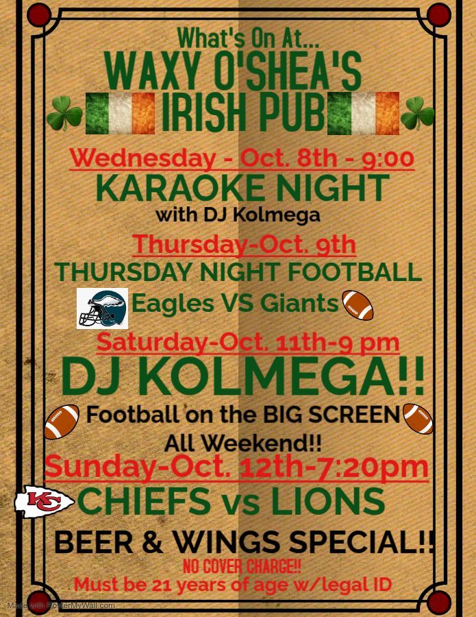 Waxy O'Shea's Events